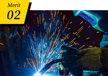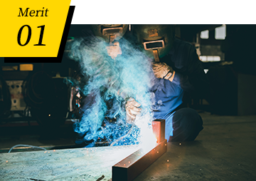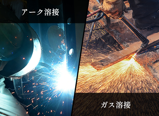 当社では、主にアーク溶接やガス溶接といった溶接方法を用いて、溶接を行っております。